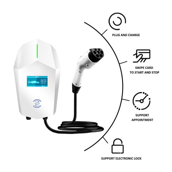 The EVSE Charging Station Wall Type OCPP is an electric vehicle charging infrastructure for charging electric vehicles. It is rated with an input voltage of 240Vac, single Phase, and 32A with a certificate of CE ETL SG S to ensure safety and quality. It also offers optional features such as a 4.3 Inch Screen, RFID Card Key, and 4G Scan Codes. The Charging Station Wall Type OCPP is manufactured in Tianjin, China and is designed to be a reliable and efficient electric vehicle recharging infrastructure for electric vehicle owners. The charging station is suitable for use in many applications, such as residential and commercial areas, public parking lots, and other electric vehicle charging facilities. The combination of premium quality and advanced technology makes the EVSE Charging Station Wall Type OCPP the perfect choice for an electric vehicle charging facility.